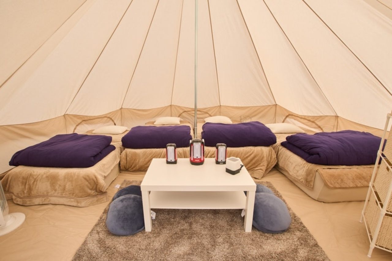 敷地内に設置された大型テントは2張り、グランピング専用の別棟2Fも自由に利用できるため、グループやファミリーでの滞在にぴったり。