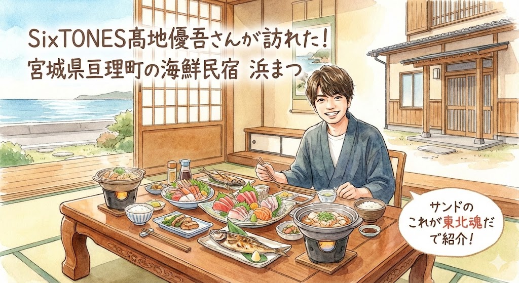 民宿浜まつは、「サンドのこれが東北魂だ 究極の休日ツアーIN宮城」でSixTONES髙地優吾さんたちが訪れたことで注目を集めた、宮城県亘理町の魅力的な宿泊施設です。